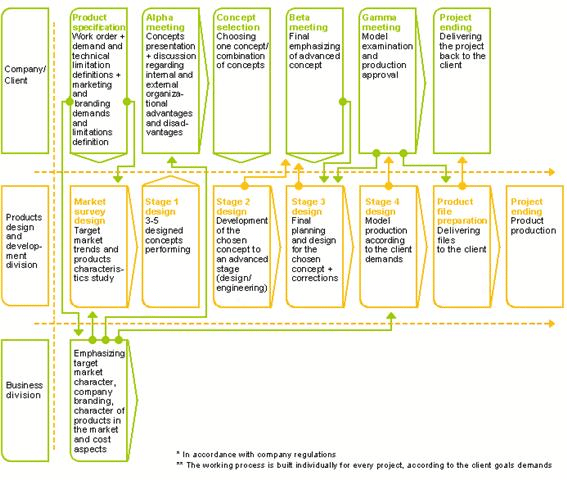 The issues emphasized by the two divisions are guiding the character of the product’s design while taking into consideration the branding goals the company set to itself and to its products, the target market, customers’ demands and the cost benefit factors which the client will examine before buying the product.
